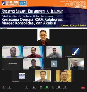 - STRATEGI ALIANSI, KOLABORASI, DAN JEJARING: Teknik Analisis dan Kalkulasi Pilihan Keputusan Kerjasama Operasi (KSO), Kolaborasi, Merger, Konsolidasi, atau Akuisisi, 26 April 2024